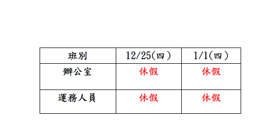 休假當天不會安排人員派送,請各客戶提早安排作業,謝謝。